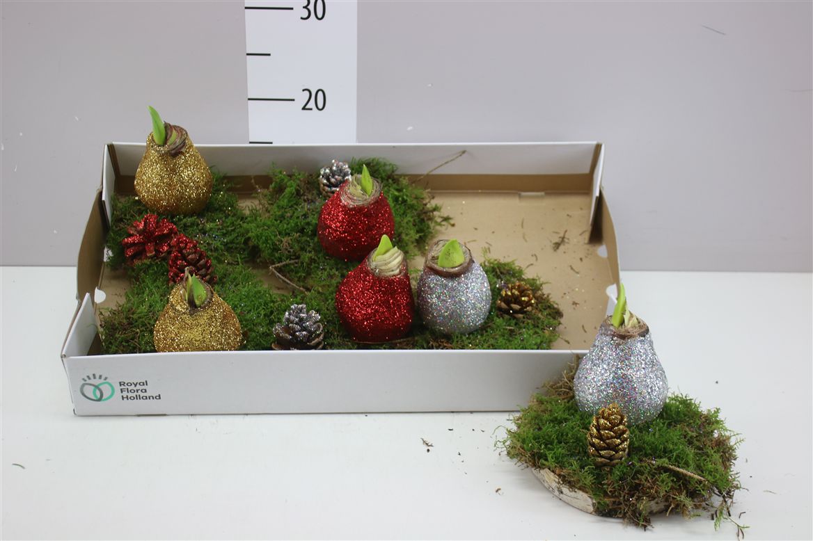 Hippeastrum Wax Glitter Op Plankje Met Deco